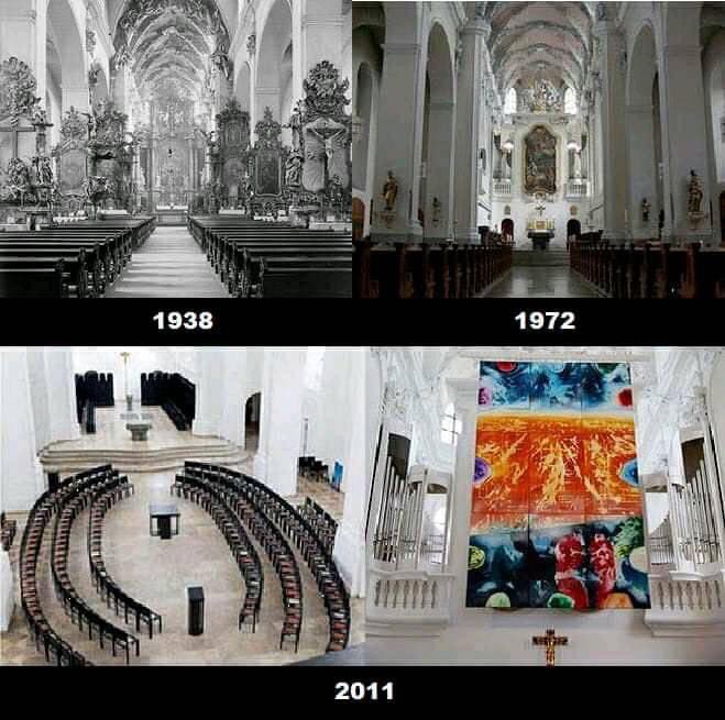 Look how this church in Germany has been “reformed.” It’s basically been destroyed. This is not what a Catholic church should look like. I wonder what the Mass is like here?